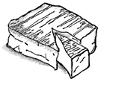 Cheeses such as Camembert, are cut like cakes. We must cut the cheese from the center, cutting two lines to the edge, to make a small, sharp triangular part.